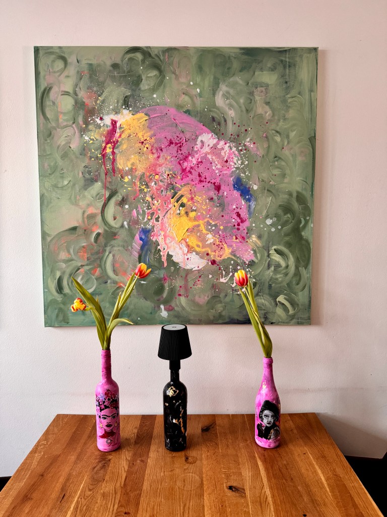 „Zwischen Blüte und Abgrund“ – Acryl auf Leinwand, 100 x 100 cm