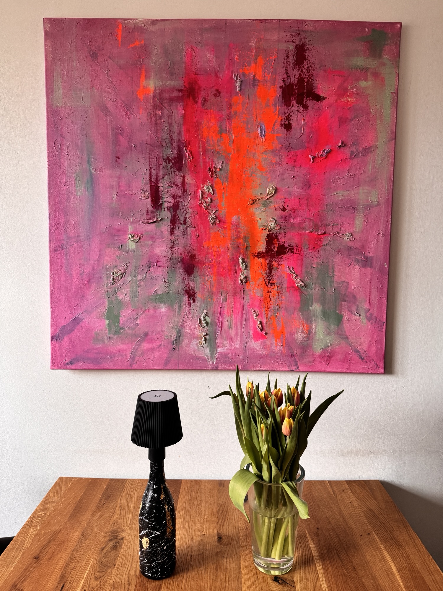 „Zwischen Puls und Stille“ Acryl auf Leinwand, 100 × 100 cm