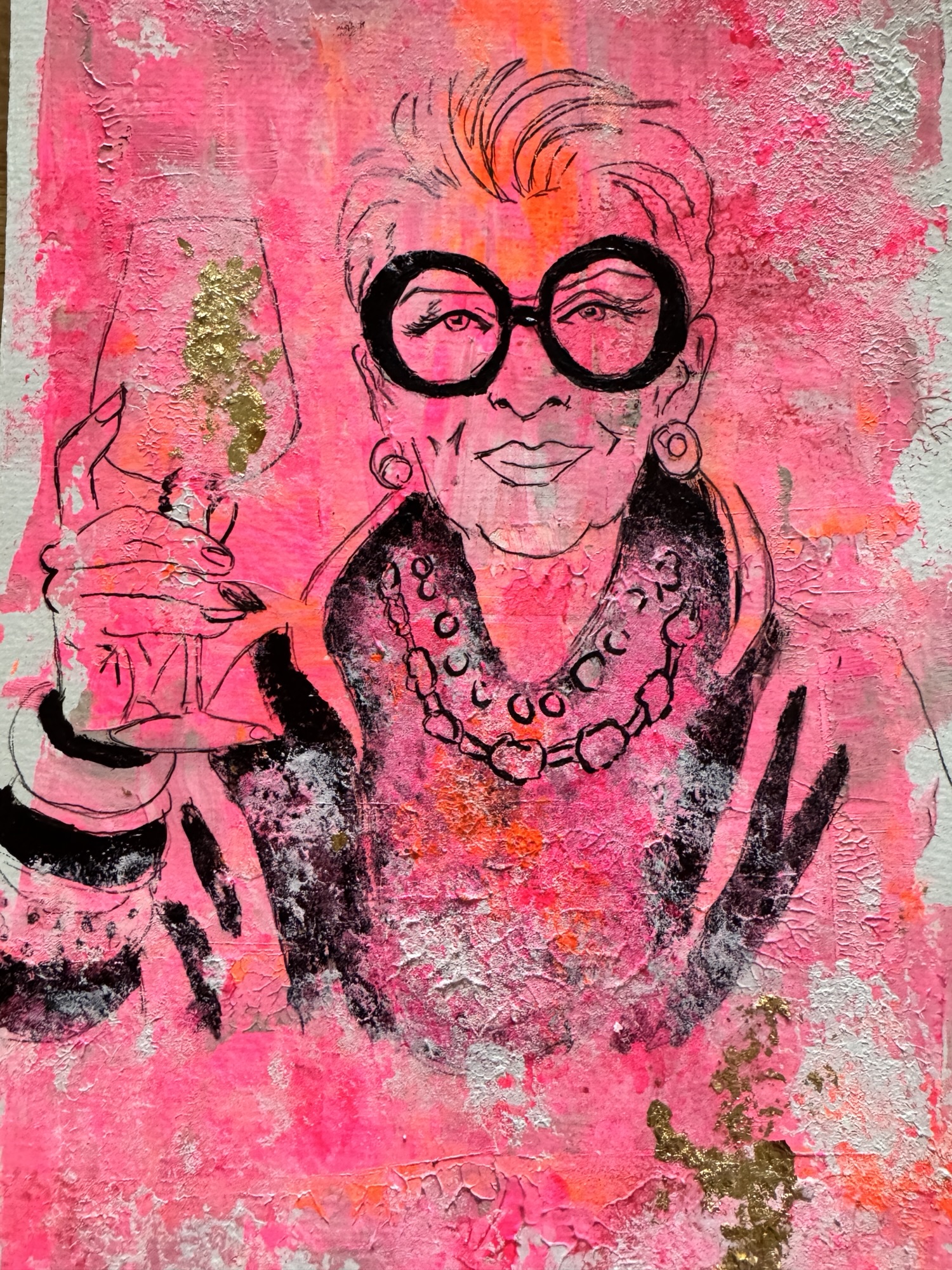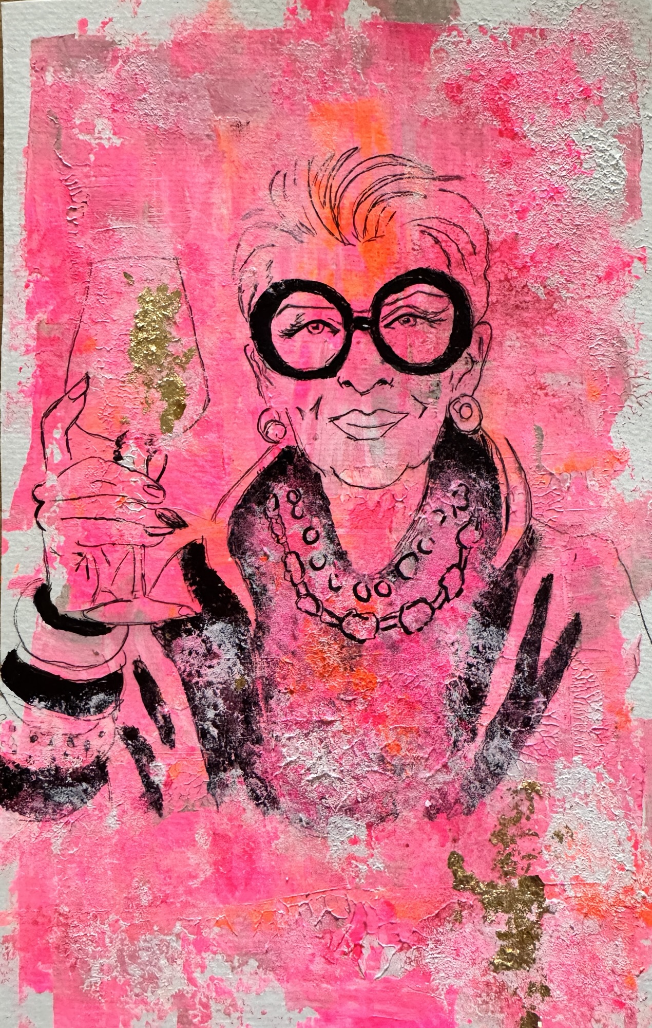 Weitere Informationen zu „Champagner & Attitude“ Acryl auf Papier, 29,5 × 21 cm