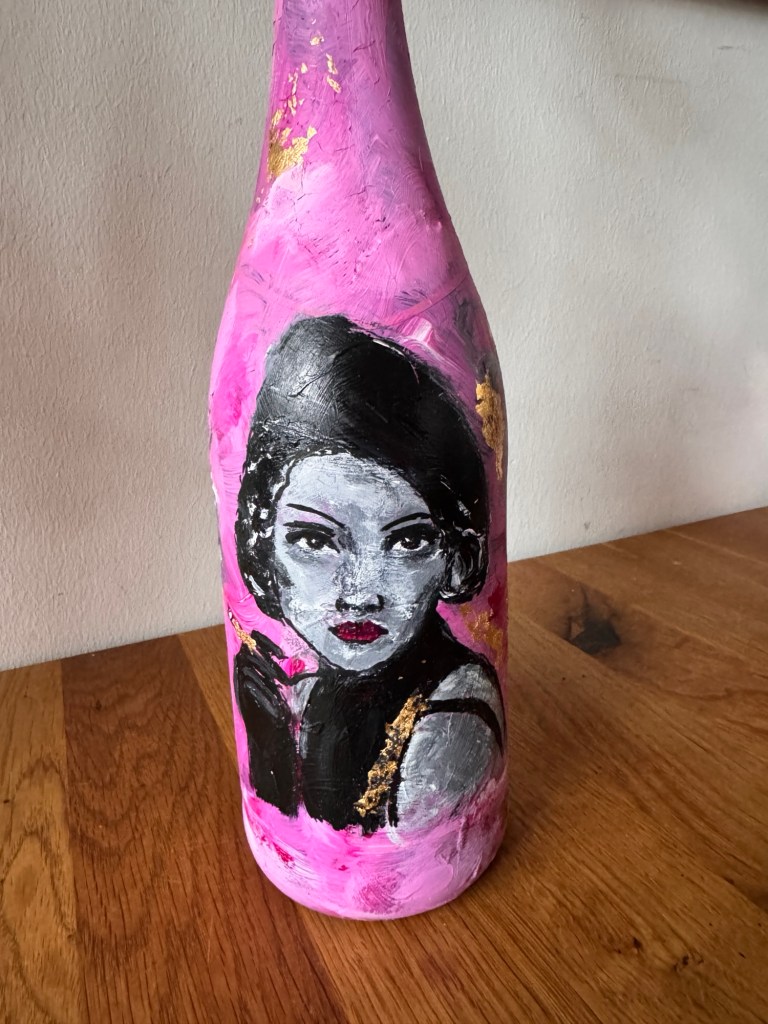 Die Farbkombination aus leuchtendem Pink und edlem Gold verleiht der Art-Bottle eine moderne, glamouröse Wirkung. Diese Töne stehen nicht nur für Eleganz, sondern auch für den rebellischen Geist, der Marlene Dietrich zu einer zeitlosen Ikone machte. Die Flasche wird so zu einem dekorativen Highlight, das in jedem Raum Aufmerksamkeit auf sich zieht.