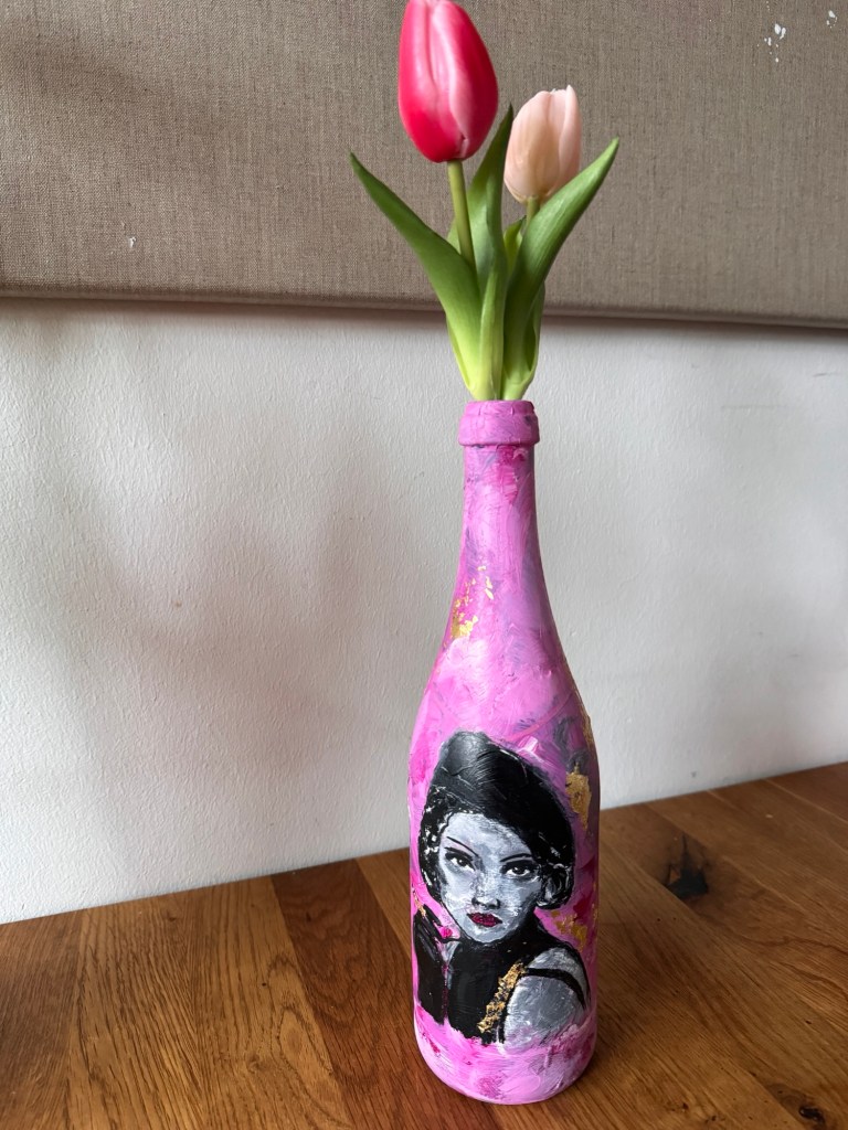 Ob als stilvolle Vase, kunstvolles Dekoobjekt oder besonderes Sammlerstück: „Marlene“ setzt ein klares Statement. Sie eignet sich ideal für Wohnräume, Ateliers, Galerien oder als Geschenk für Kunstliebhaber. Jede Flasche ist ein Unikat und bringt Persönlichkeit, Farbe und Charakter in jede Umgebung.