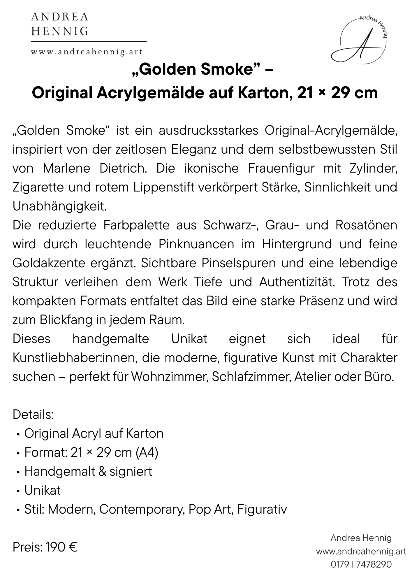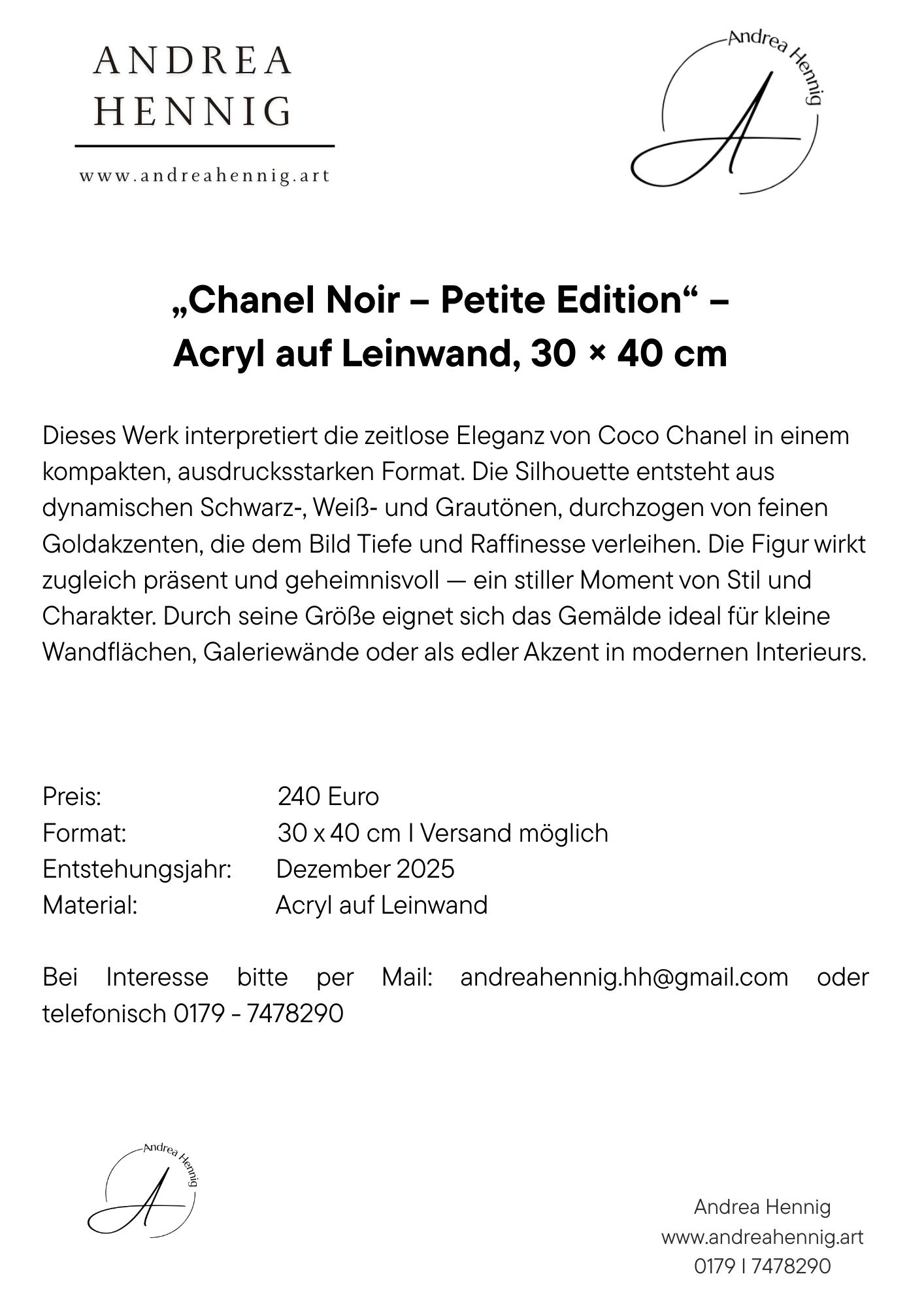 „Chanel Noir – Petite Edition“ – Acryl auf Leinwand, 30 × 40 cm