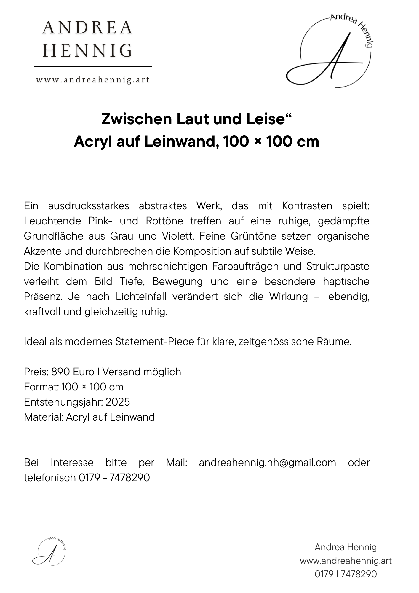 Zwischen Laut und Leise“ Acryl auf Leinwand, 100 × 100 cm