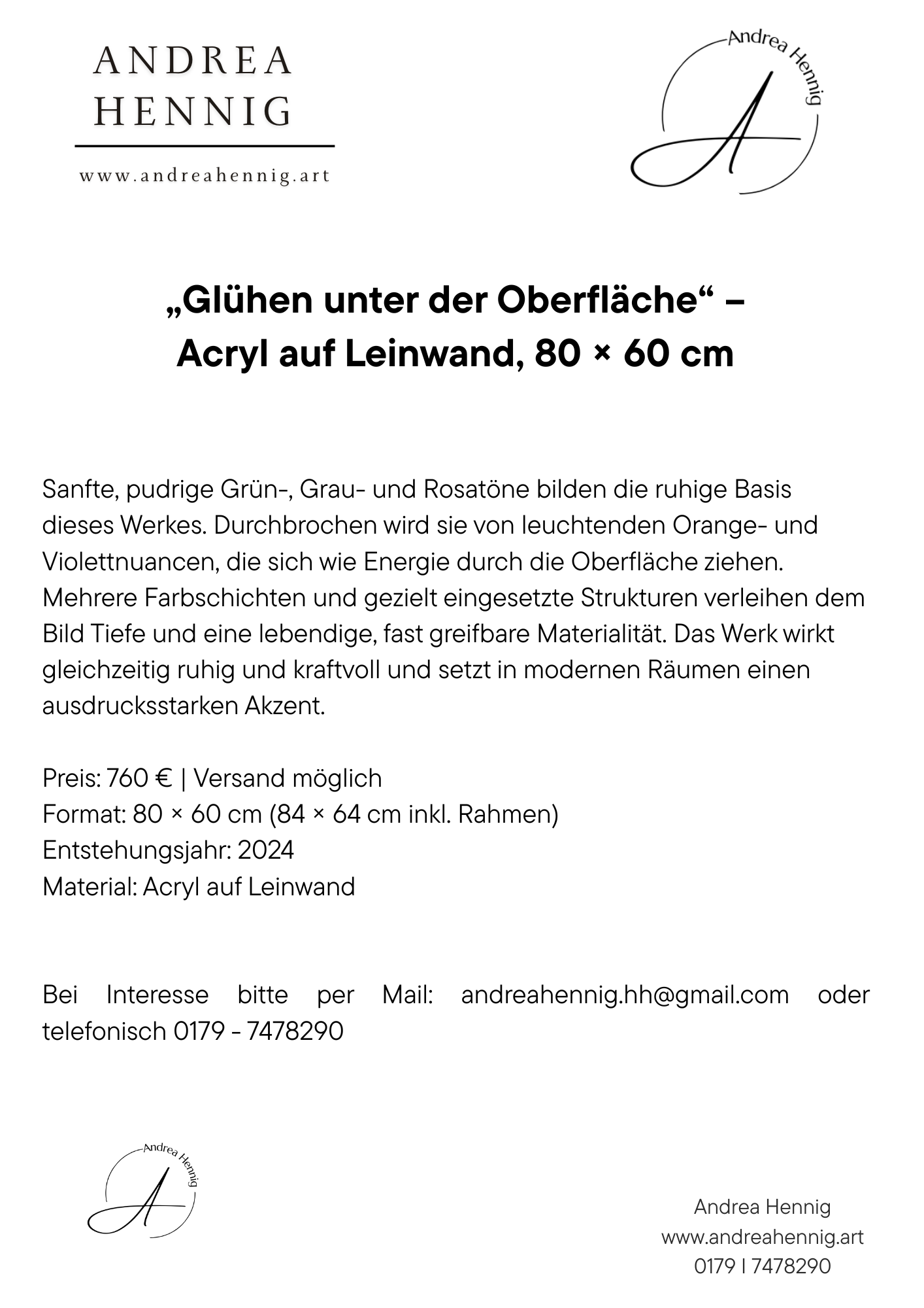„Glühen unter der Oberfläche“ – Acryl auf Leinwand, 80 × 60 cm