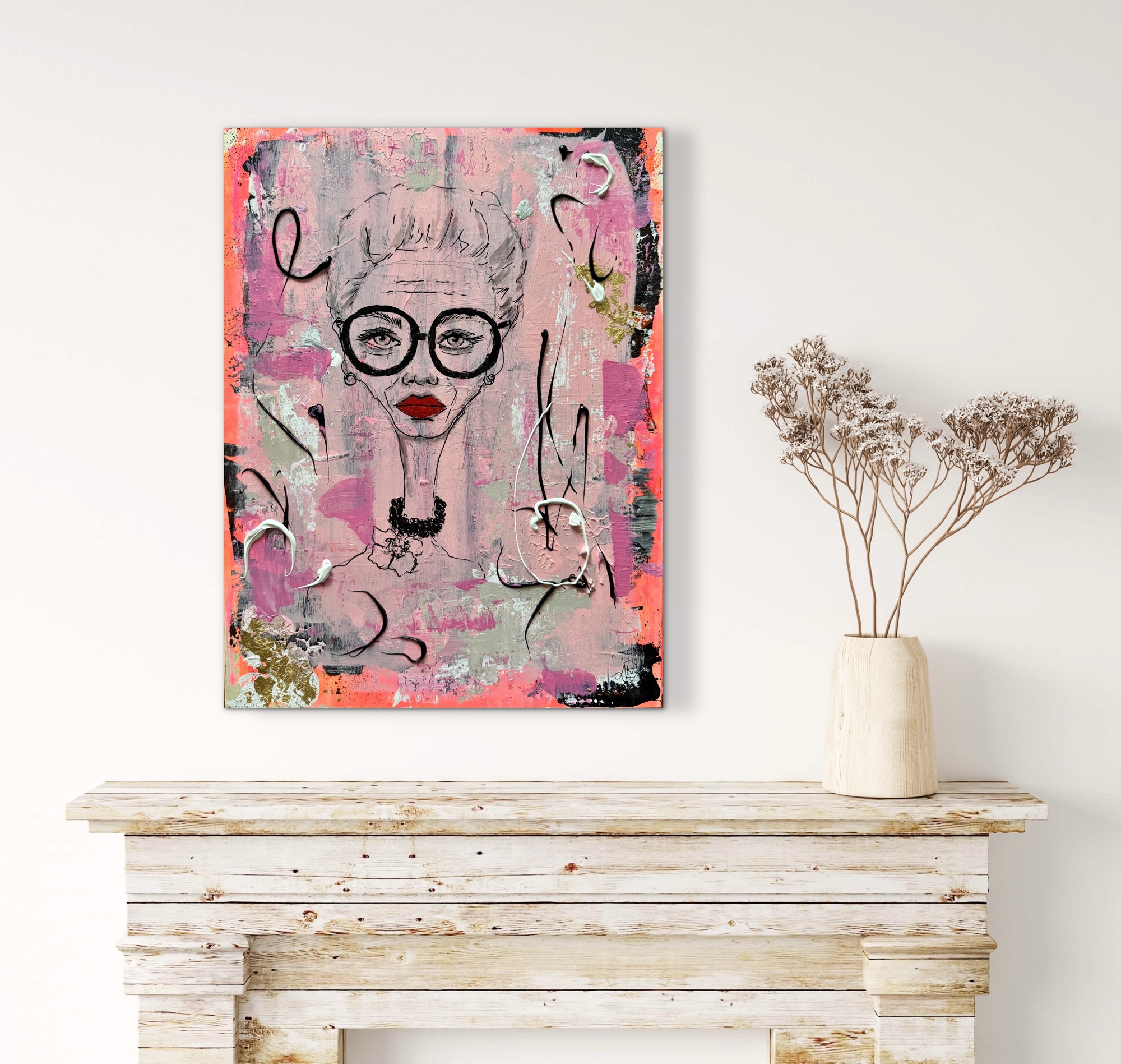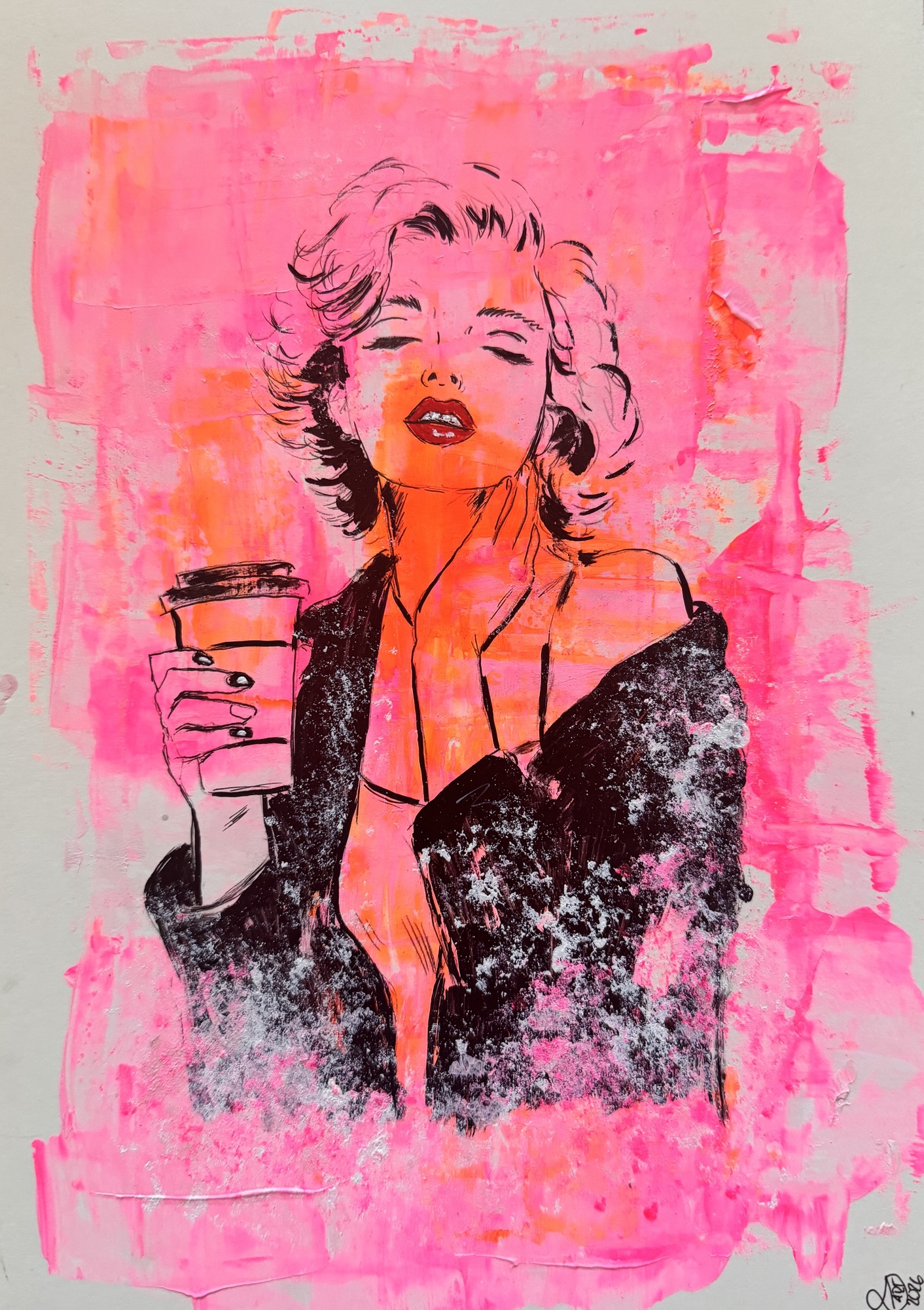 Pink Attitude“ Acryl auf Karton, 29,5 × 21 cm
