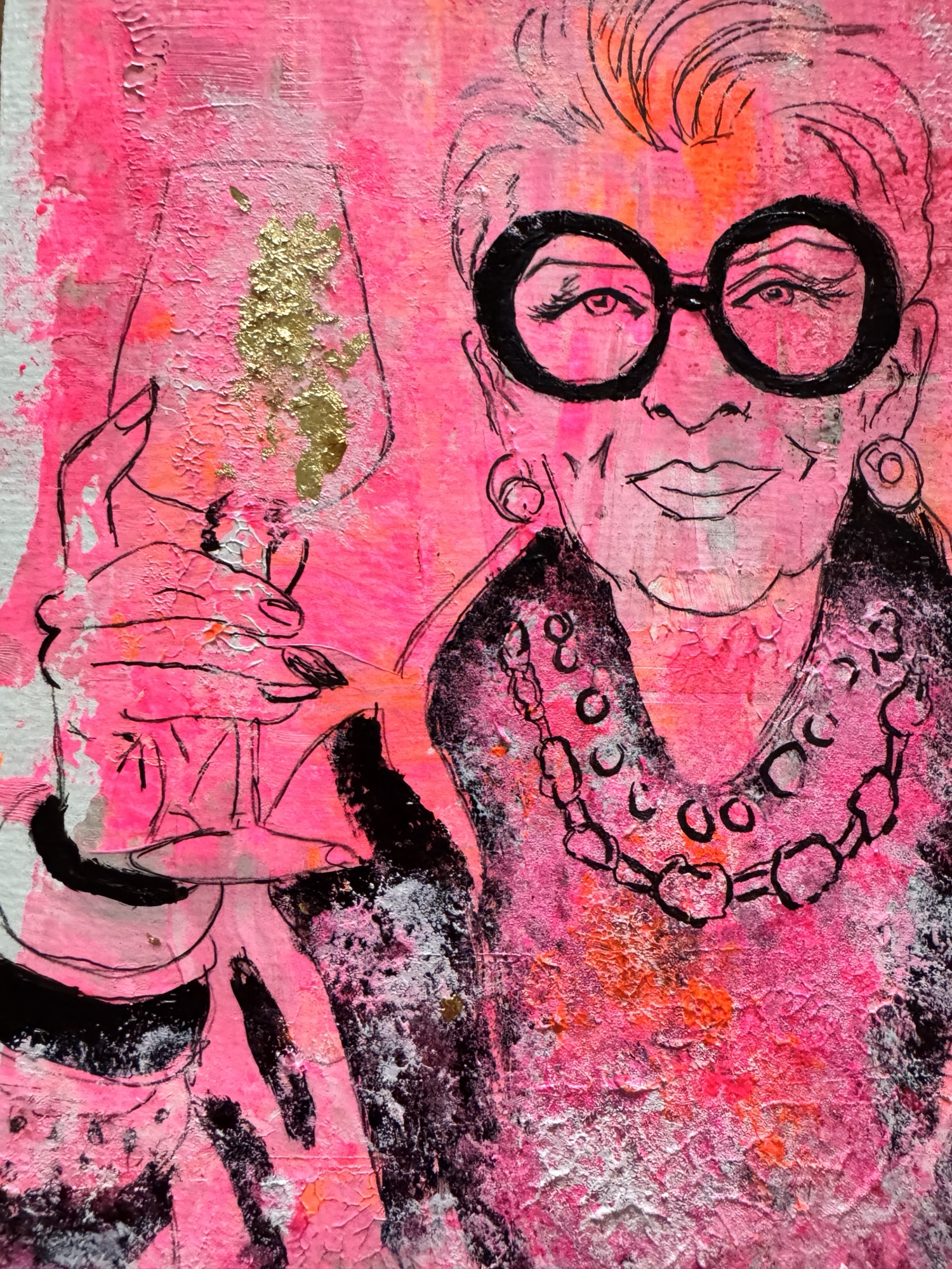 „Champagner & Attitude“ Acryl auf Papier, 29,5 × 21 cm