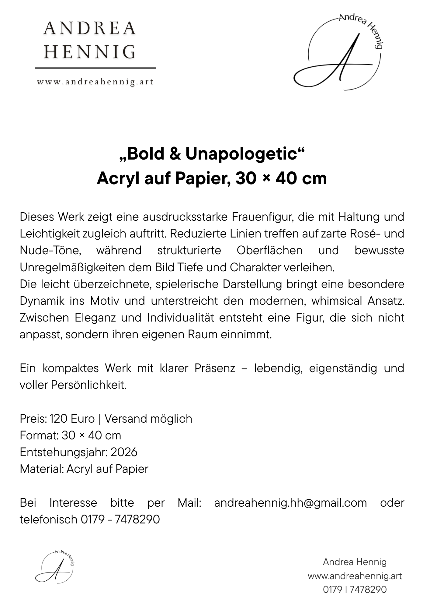 „Bold & Unapologetic“ Acryl auf Papier, 30 × 40 cm