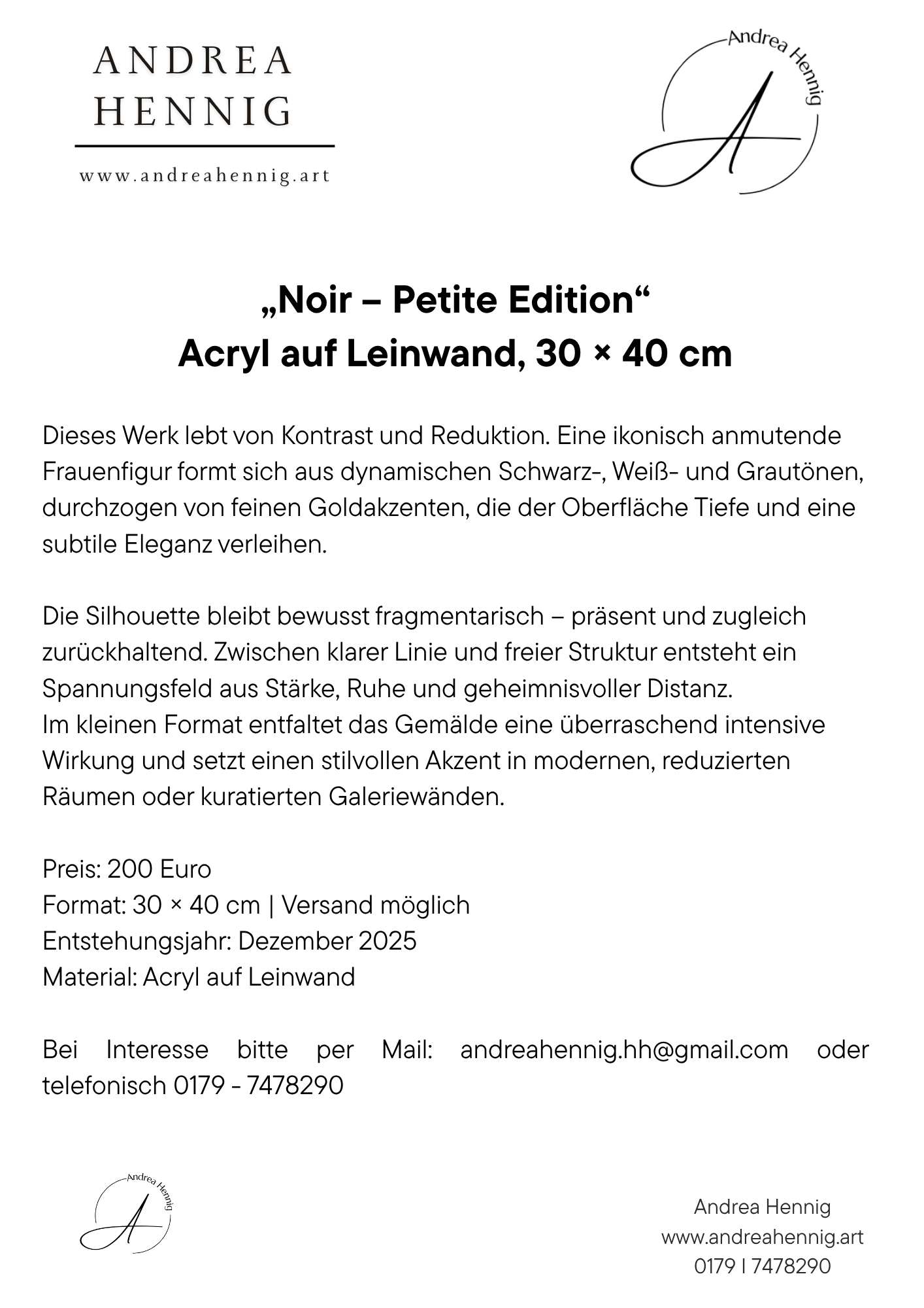 „Noir – Petite Edition“ Acryl auf Leinwand, 30 × 40 cm